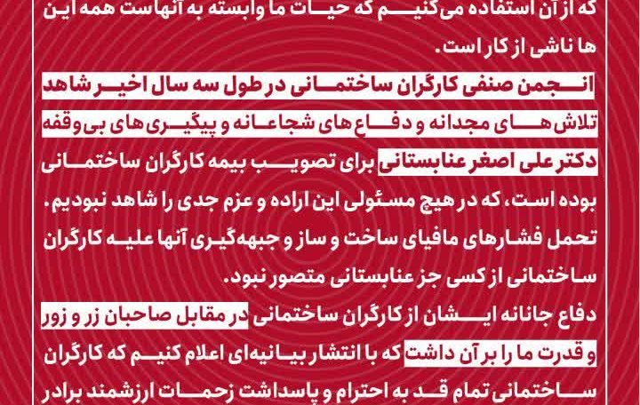 برای احقاق حق کارگران ساختمانی عزیز و برقرار شدن بیمه آنان تلاش کردیم و به نتیجه رساندیم.